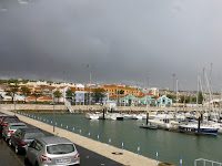 Hard rainstorm in early morning, HUGE thunderclap would have woken whole camp! Cool and sunny. Off on coast road - much bigger surf this morning, sea-mist and waves over road. Past ostrich farm (feathers for fans and hats?) Bypassing Sines, looks much too industrial, rejoining highway to Lisbon. Passed cork wood plantations, bark stripped to halfway on trees, trunks numbered with white paint. Cork products in gift shop at morning tea stop - shoes, handbags, aprons, umbrellas...striking, soft chamois type leather, but very pricey.